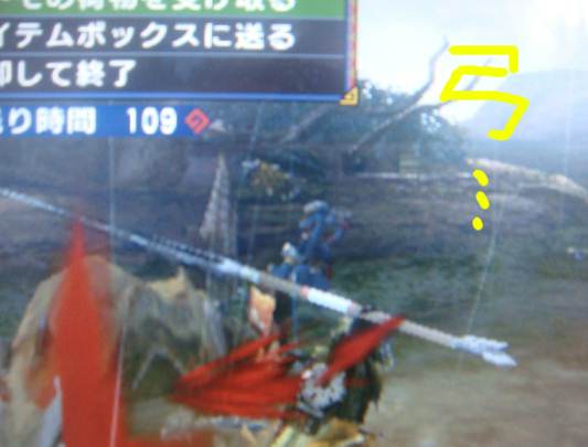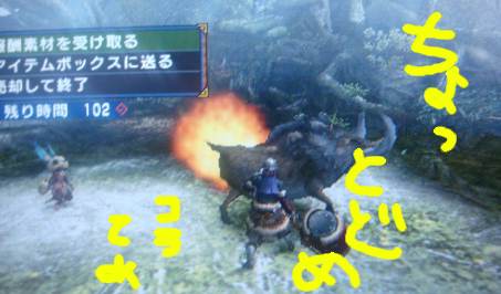 戻ったら緊急クエが発生しておりましたε('∞'*) クエ名は 踊るクルペッコ ペリカンみたいな鳥ですねー。 鳥が相手ならやっぱり遠隔武器の方でしょ!? 生産できそうなのが、フロギイリボルバーだったので 素材を狩りにフロギイクエへ。 ・・・ 樽を置くな樽おおおおおおおおお。 大型近接タイプのアメジストちゃんの仕業☆ 攻撃がランダムらしく、たまに樽トンで来たり 光るブーメランを投げたりハンマーで敵を気絶させたりと とてもマルチなヤツです。 1クエすれば素材もそろったので早速村に戻って 作ってもらい、装備完了! 装備脱げるってどういう事なんだ・・・。 しょうがないので適当に装備を生産してから 試しにルドロス狩りへ行ってきましたー! ・・・ 私には使いこなせる自信が無い・・・。 曲射は範囲表示されるので敵狙いやすいんですが 近接になると空振りまくりでしたー。 オトモ2匹が前で叩いてるあいだに、後方から矢を放つんですが 在らぬ方向へ飛びまくりです(゜Д゜) 打つ敵狙ってると後方から違う敵が寄ってきて中々狩りが出来ない~。 側に寄らないからHPは減らないですが 爽快感がない。 なんていうか 後方支援はもう飽き飽きなんやっちゅうねーん。 うーん。弓も慣れたら気分爽快になれるんかしら。 クルペッコを弓で倒せる自信が出ない(ーΩー )