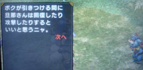 突進で死にそうになりました。 師匠は頭を狙えって言ってたのにいいい。 そういえば、古代の武器は買わなくてもボックスに一揃え支給されてるんですねー。 知らずに太刀とハンマー買っちゃったYO! まあ、練習を兼ねて双剣とかランスとか使ってます。 双剣はモーションが格好良い!研ぎ作業が面倒くさい( ̄_J ̄) ハンマーはブーンが楽しいですね。 ブーンは途中でキャンセルとか出来ないんですかね? 敵いない方向にブーンてなってるのは勿体無い。 ただ溜めて叩のは楽しいです。 あんまりオトモに誤爆しないし! 楽しくファンゴいじめしていたら最後の最後で美味しい所を 華麗に止めを決めるボーンネコちゃん。 可愛いから許す>< 採集サボると足蹴しちゃうけどねっ! 村クエ楽勝やーん。 で 村クエ1の5 恐怖の予兆。 ロイヤルゼリーの納品。 アイルーが沢山いる所のお爺ちゃんに沢山ロイヤル貰ってるから 納品楽勝~♪ ・・・ アイテムにロイヤルゼリーが無い件。 ( ̄д ̄) エー しゃーない 取りに行くかー。 蜂の巣最終に行ったらイベント発生。 恐怖ってもしや・・・ OPに出てたクマじゃないかっ! 襲ってくるに何なのこいつー。 初斧しょって挑むには狩りにくいわあ。 オトモをなんど地中に潜らせてしまった事か・・・・。 不甲斐ない主人でごめんよ~。 でもおとりになってくれー!私の為に! ひーこら叩いてたらクマが逃げたので、その隙にロイヤルゼリー採集。 5個貯まったし、もうクマ倒すのまでやらんでいいやろ!と 逃げて納品しクリア。 なんとなくスッキリしないので ハンマーに持ち替えてリベンジ。 肉も薬品も使い切った~。 あ~疲れた。 忍者ブログ [PR]