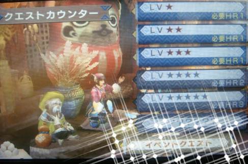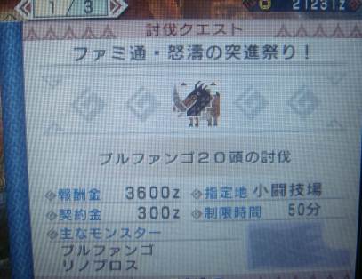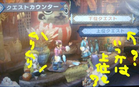 さあ、ブログ書くぞ~って忍者開けたら繋がらない不具合。 年末だからか夜0時は激重ですね┐( ̄ヘ ̄)┌ 気を取り直して昼間っから更新でーす。 本当冬季休暇っていいわあ(* ´Д`*)=3 イベントクエ! ダウンロードしたのはいいけど、どうやって進めるんだ!?って事で 彷徨える過程をば・・・。 集会浴場のお姉さんに話しかけます。 一番下にイベントクエスト欄があるので、それを選択。 メモリーを読み込みなう。 今後もダウンロードがあるなら、やっぱり容量多いメモリーにしておいた方がいいねえ。 読み込みが終ると下位、上位が表示されます。 上位は何度押してもスカスカで反応なし。下位のみ色が付いてます。 ブルファンゴの素材が双剣白玉上の素材だから、ちょいやってはみたい。 村クエはLv★★の8 ある日、森の昼下がり までクリアしましたー。 アオアシラにも慣れたよ! 初見では鷲づかみにされて何度ピヨられた事か・・・・っ。 楽天ブックスで。 今日からプラチナ会員P3倍 パソ&ケータイでP4倍 結構ポチり時かも。 発売から一ヶ月たつと出荷数も追いついてきたみたいですね~。 一時は8000円とか見たゾ。