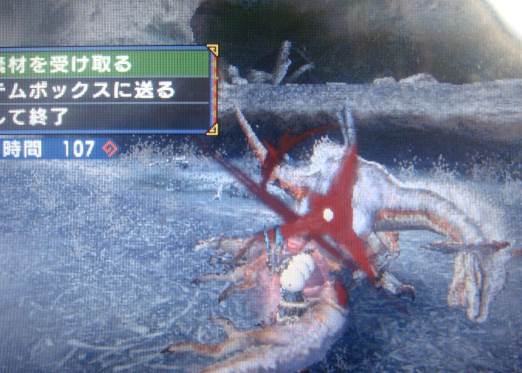 ブログも後半は更新も滞りがちでしたがMHP3のお陰で ギリギリ活気づいてます。 年賀状イラストはこれにしました。(やめろ ボーンはウサギでしょ! もう年賀ネタはこれしかない! しかしやばい・・・インク フォトマゼンダとブラックが切れてしまい 今から買いにいかないと全員分刷りきれていません。なんてこったい。 ・・・・ 村クエLv★★やら 温泉クエをやり、白玉素材のドスファンゴ狩りに勤しんでました。 温泉クエいいですね。ドスファンゴが湧きまくりでした。 牙がやっと二つになったー! 皮は取れるのに牙でないから、やんなっちゃうYO! イノシシの前に行きたくはない。 けど 左右いいポジションをオトモに取られるので 自然センターに行かされる不具合( ̄_J ̄) イノシシの時はハンマーにすりゃよかった。 ・・・ でも 乱舞が楽しすぎる~! というか、やっと乱舞するようになりました。 あと鬼人化の時の回避も。 これでドスファンゴのケツアタックを華麗にすり抜けれるようになりました~>< 初めて痺れ肉を使ってみた。 寝てる時に置いて おこしてみたんですが 全然食べねええええええええ。 いいよ、もう。肉は! んで戦闘してたら勝手に食べ始めたので さくっと終了。 肉食べ時がいまいち分からんかったです(*'ω'*)・・・・。