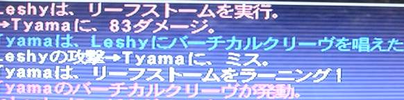 再びラーニングしに行ってきた! 狙うは簡単系 巨木技・リーフストーム~。 流し目が素敵(☆Д☆) *************** 【リーフストーム】 敵 樹人族 範囲内の敵に風属性ダメージ ラーニング場所 ルフェーゼ野 ジャグナー 76から見て練習以下なので、 ルフェでも弱いです。 樹だらけだし。 *************** サポ忍じゃなくて、サポ白がお勧め☆ サポ踊子でもいいですねー。 つか、踊り子Lv37なんで、上げなきゃならんですねー。 多分セットしないだろうけど、覚えると嬉しい。 調子づいて次はリジェネーションゲットしにいくぜー! 自国から記念モグテレポでマウラから島へgo リジェネかけてボーっとしているの図。 全然技ださねえええええええええええええええええええええ。 って事で現地落ちしました。